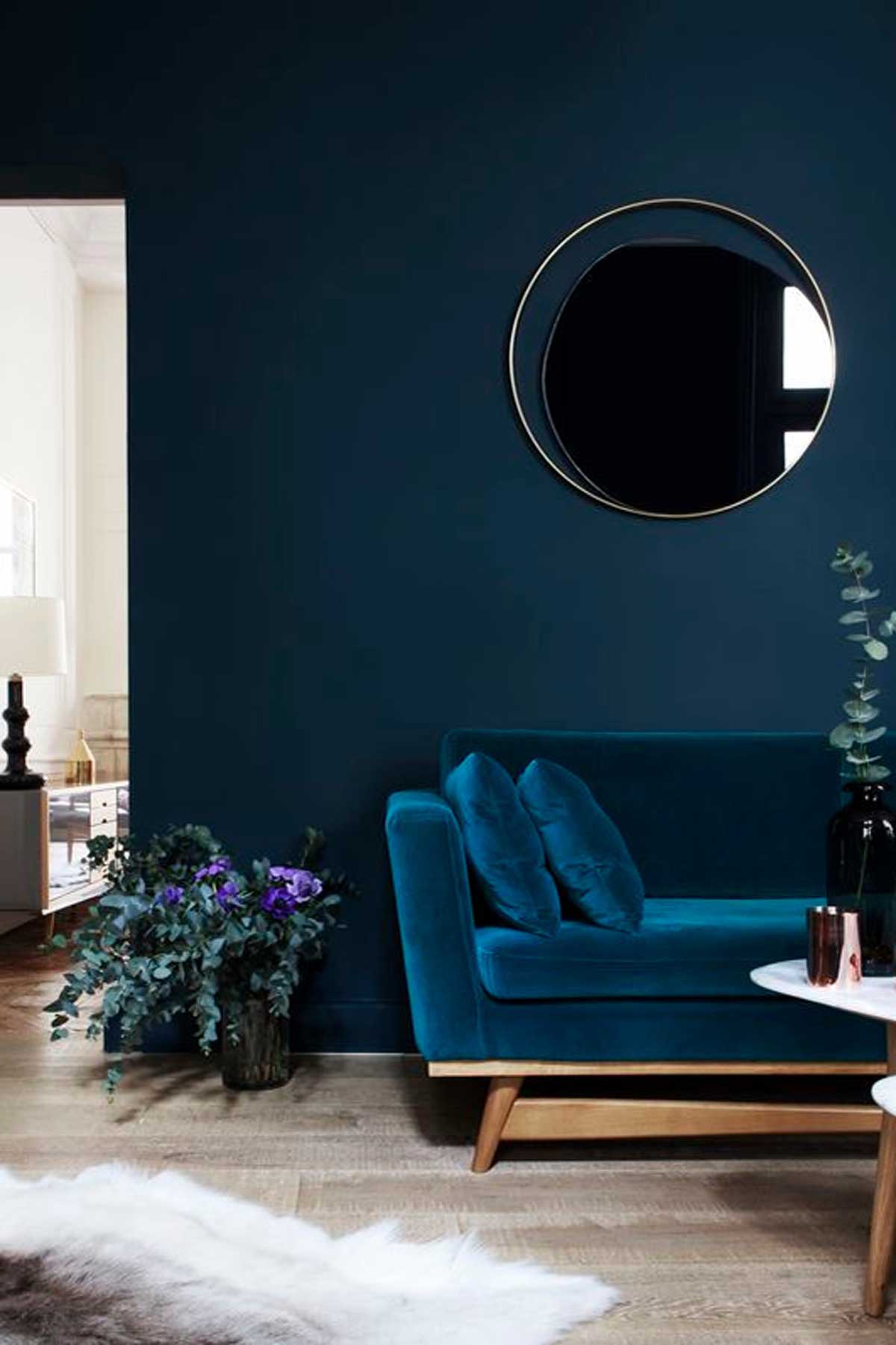 practical luxe design deep blue living room