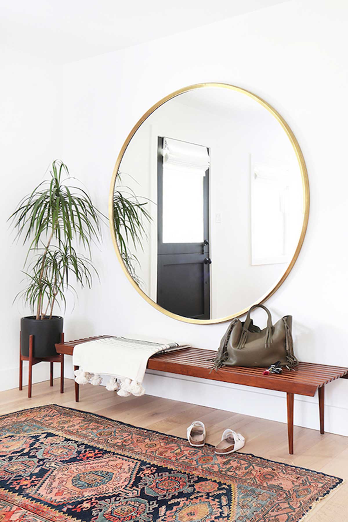 If you’re after something a little more sleek and clean, simple-framed oversized mirrors don’t cost an arm and a leg nowadays. And what an incredible statement they make, especially in a darker room where a large reflective surface can help you retain a spacious feel and practical luxe design.