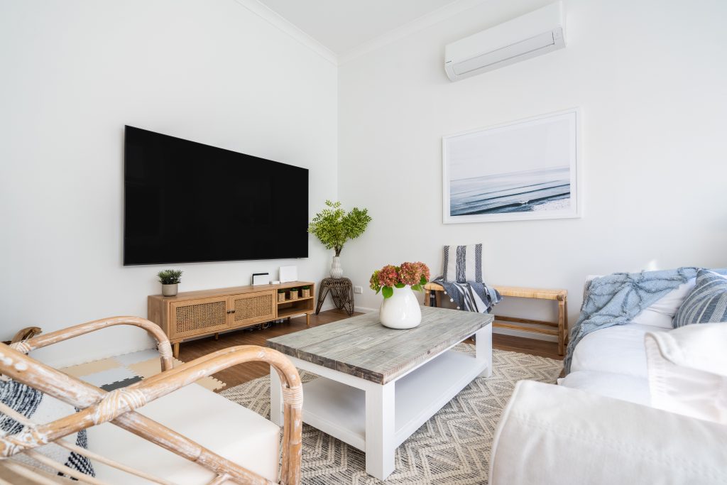 Being so close to the beach, this family wanted to embody the coastal lifestyle into their design, but still retain the practicality of a family home. From start to finish the project ran seamlessly with an empty space transformed into a loving family home for these new Australian residents. We couldn’t be happier to have been entrusted in managing the design and installation process for this lovely family.The design team had a clear brief that the home was to be flexible in its function and exude a relaxed Coastal style. With young growing children and the prospect of visiting family from overseas, the rooms needed to be multi-functional and family-friendly.The team leaned into their strong knowledge of suppliers across Australia to find the perfect pieces in line with the client's budget and timelines. With the fast-paced response from both the client and the design team, the project was completed in 2 weeks.The materials were of high consideration throughout the design process. Robust finishes were complemented with textured soft furnishings giving a light and breezy coastal home for this English family. The lounge possesses a soft linen look and feel but it is a durable blend fabric that also has a fully removable cover for easy cleaning The clever design also becomes a luxury double bed for those friends and family visiting.Many of the timbers were washed or aged presenting the perfect surfaces for robust living. No precious finishes that showed wear and tear, only surfaces that become more beautiful as they are worn in.