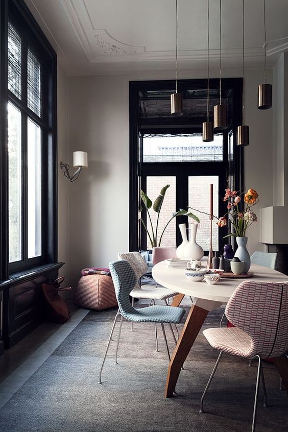 Each established interior design style gains a unique effect. Serenity and Rose quartz offer an obvious opportunity for Modern in the form of bold colour blocking while Modern Eclectic will see these tones paired with metallics, rich fig and green tones.