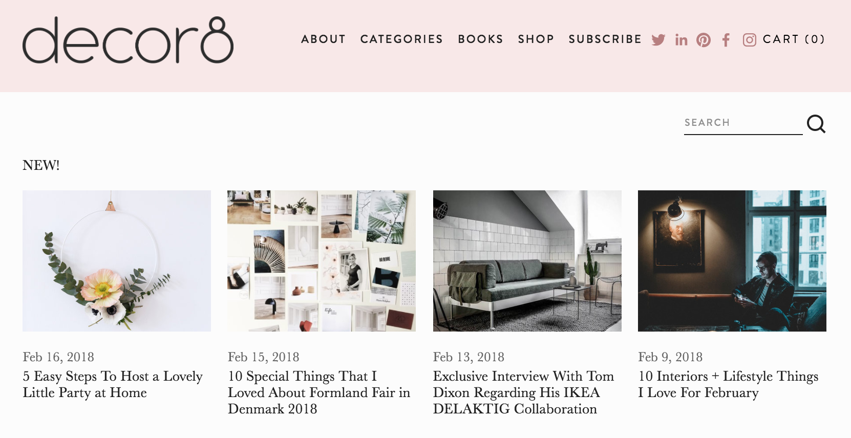 The Design Files was established by Lucy Feagins, a stylist and set dresser, who works alongside InsideOut and Domain publishing design related news and advice. Gaining a large following to become one of The Time’s UK’s Top 50 design blogs across the world, their home archives offer insight into style trends, beautiful homes around the world and industry news. Not only do their articles cover interior design, but offer extensive information for creatives, foodies, gardeners and architects.