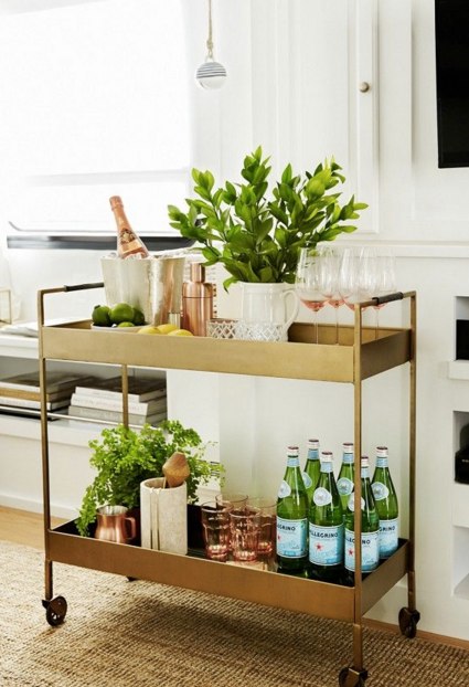 Use trays to divide the areas of your bar cart into sections for bottles, glassware and accessories.