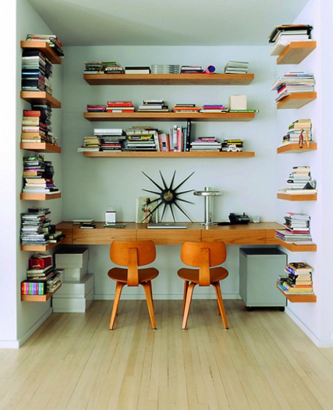 floating shelves walls vintage home office